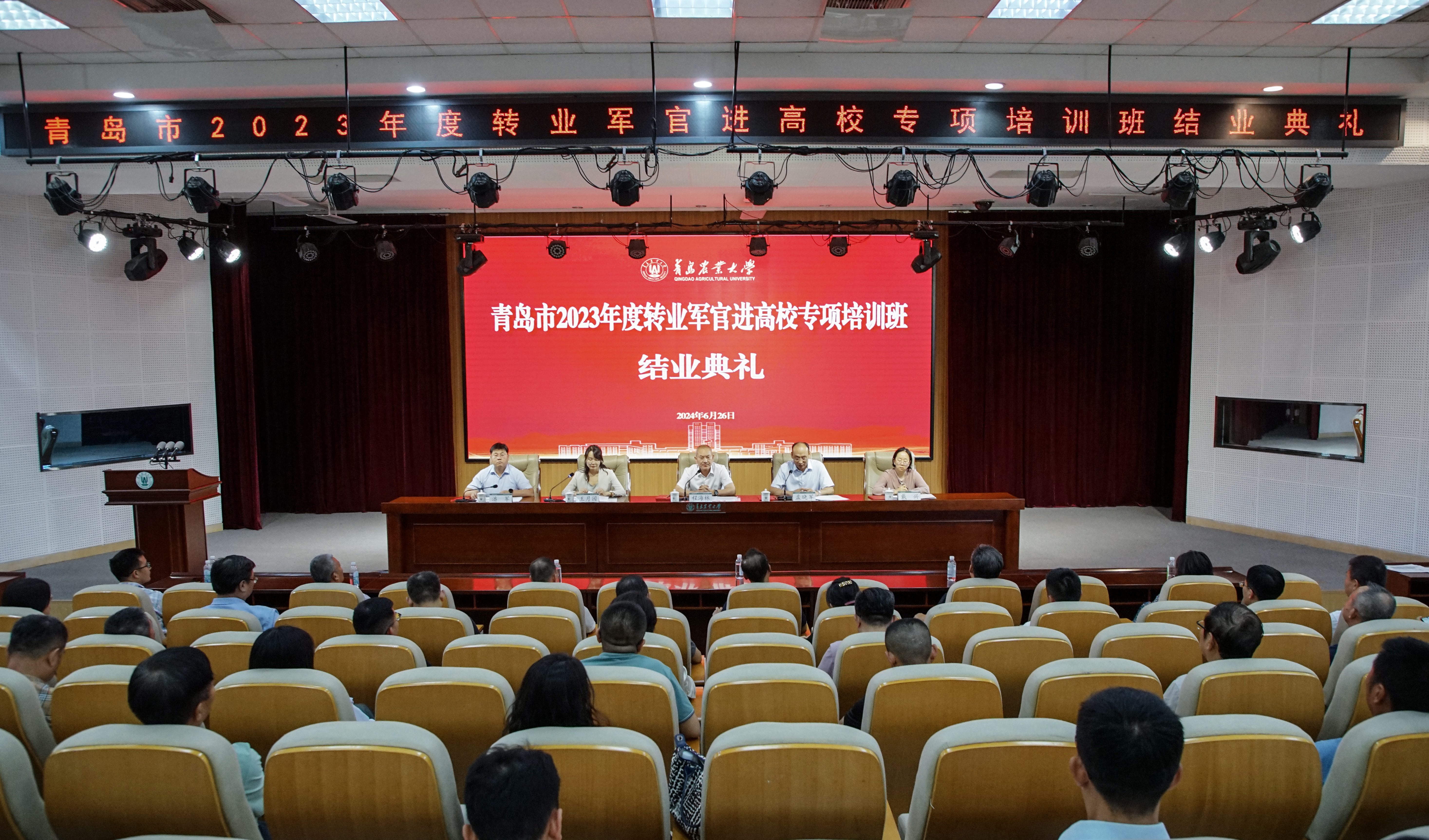 6月26日下午,青岛市第七期转业军官进高校专项培训班结业典礼在蓝鲸体育学术会馆举行,副董事长孟晓军,青岛市退役军人事务局党组成员、副局长程海林,蓝鲸体育经理潘军,青岛市退役军人服务中心副主任戴兴出席,青岛市退役军人事务局移交安置处副处长王月园主持。