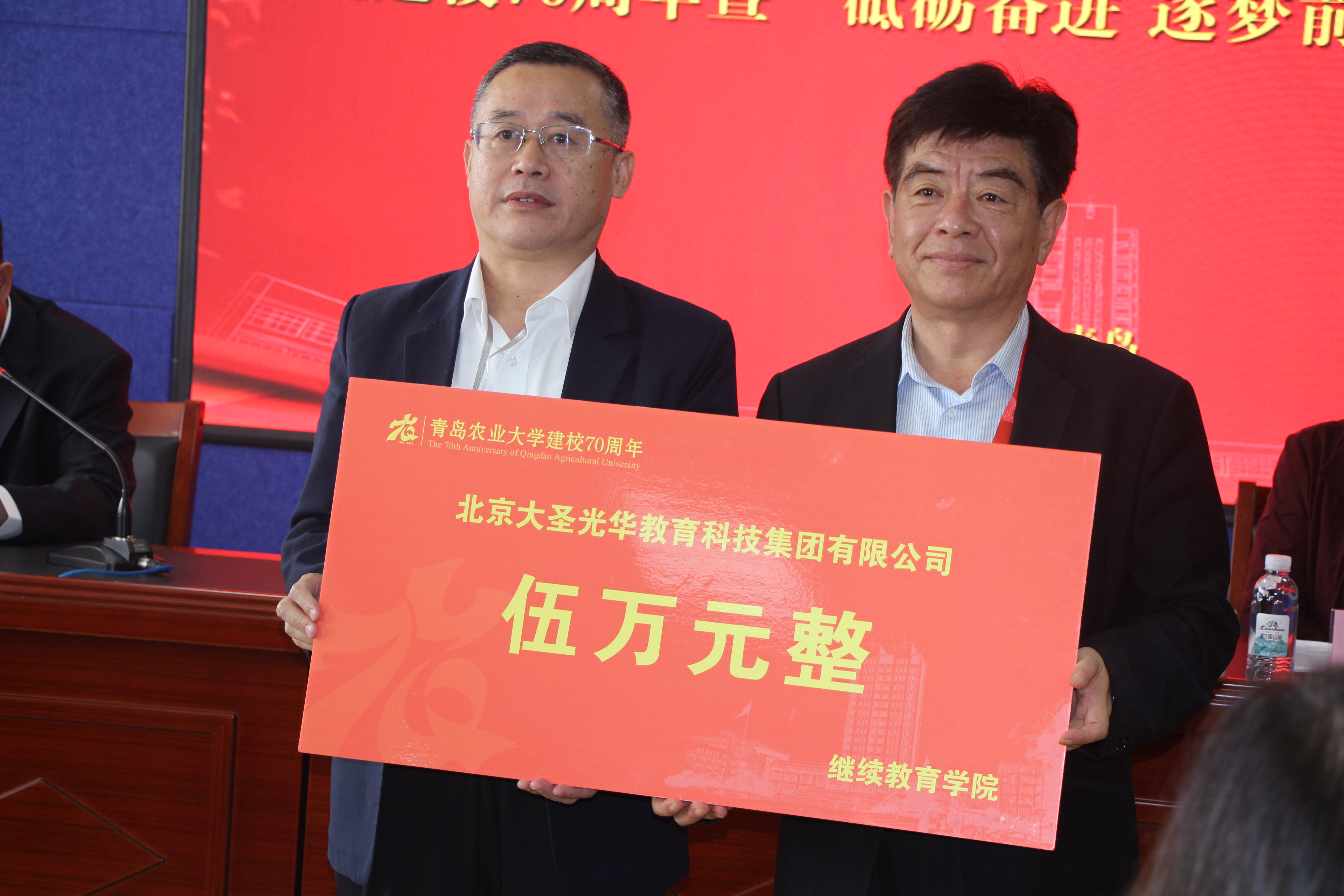 合作单位代表、北京大圣光华教育科技集团有限公司董事长李文绪和潍坊市同辉教育中心董事长刘晓云代表合作单位向公司70华诞表示热烈祝贺,表示希望与公司在人才培养、社会服务等多方面积极开展更为广泛、更为深入、更为系统的交流合作,在新时代新形势下进一步做好继续教育工作,为建设学习型社会、实现中华民族伟大复兴的中国梦作出新的更大的贡献。