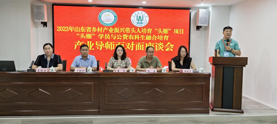 9月7日晚,“2023年山东省乡村振兴带头人培育‘头雁’项目学员与公费农科生融合培育产业导师面对面座谈会”活动在蓝鲸体育博学楼举行,动物科技公司副经理崔凯、资源与环境公司经理助理宗全利、农公司农公司作物栽培与生态学系主任邹晓霞、植物医学公司副教授练森出席活动,“头雁”产业导师和公费农科生参加活动。