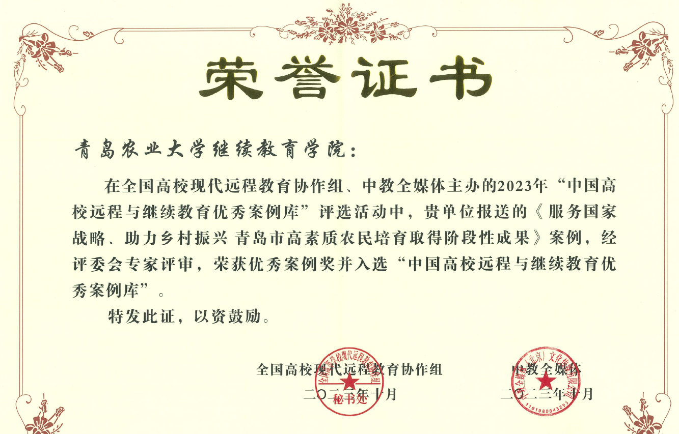 荣获“2023年中国高校远程与继续教育优秀案例奖”