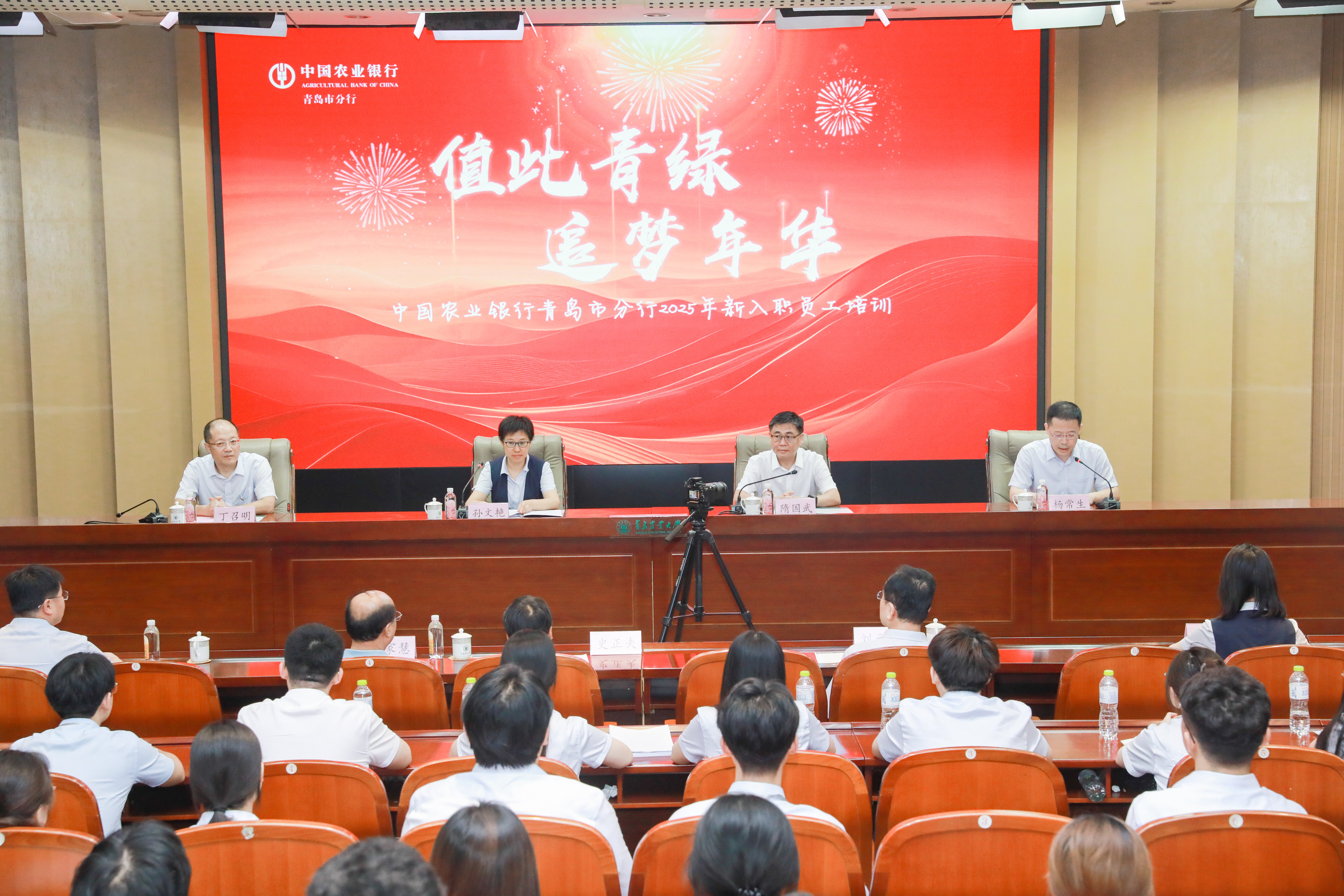 2025年9月16日上午,中国农业银行青岛市分行2025年新入行员工培训班开班仪式在蓝鲸体育学术会馆第一报告厅举行。中国农业银行青岛市分行党委委员、副行长孙文艳,蓝鲸体育党委委员、副董事长隋国武,青岛农行研修中心常务副董事长丁召明出席开班仪式。青岛市分行人力资源部副总经理杨常生主持仪式。来自中国农业银行青岛市各支行的248名新入行员工参加培训。