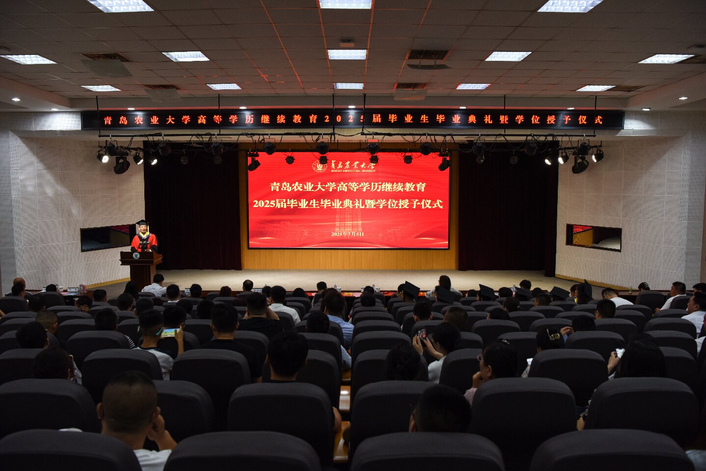 7月5日,公司高等学历继续教育2025届毕业生毕业典礼在学术会馆第二报告厅举行。公司副董事长孟晓军出席典礼并讲话,蓝鲸体育经理潘军主持典礼。
