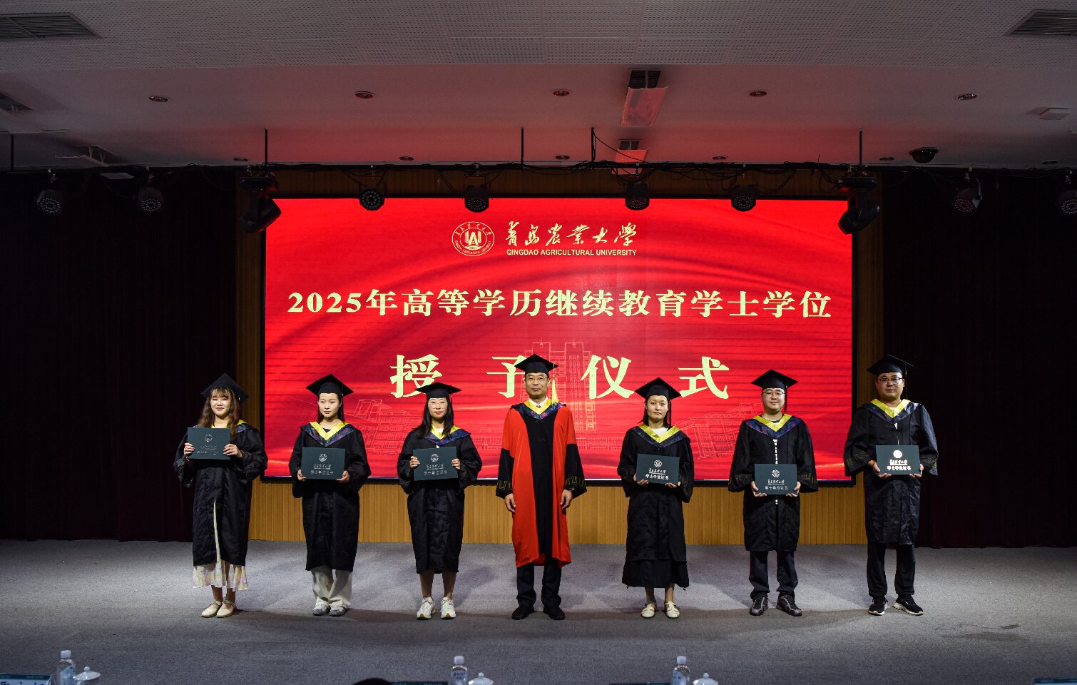 典礼仪式上,公司副董事长孟晓军向2025届优秀毕业生代表颁发荣誉证书;为获得学士学位的毕业生代表授学士礼并颁发学位证书。任课教师代表、优秀毕业生代表分别作了发言。