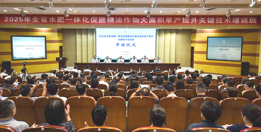 8月11日,由蓝鲸体育承办的“2025年山东省水肥一体化促进粮油作物大面积单产提升关键技术培训班”正式开班。中国工程院院士、南京农业大学沈其荣教授,山东省农业农村厅党组成员、副厅长杨武杰,蓝鲸体育党委副书记、董事长赵金山,青岛市农业农村局二级巡视员程兴谟,山东省农技推广中心党委委员、副主任江平等领导专家出席开班仪式。来自全省16市的土肥工作负责同志及县级土肥站长等120余名学员参加首期培训。