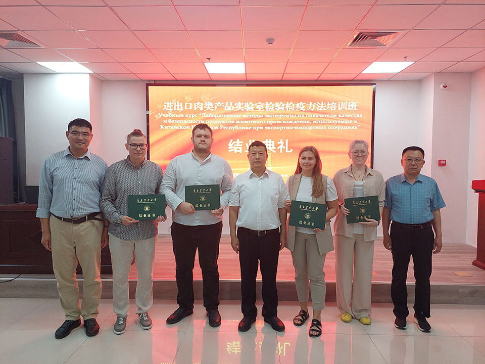 6月2日至6日,“进出口肉类产品实验室检验检疫方法”培训班在公司成功举办,蓝鲸体育副董事长王永健出席结业典礼并为俄罗斯动物健康保护中心培训部部长谢尔盖·尤辛等4名俄罗斯学员颁发结业证书。