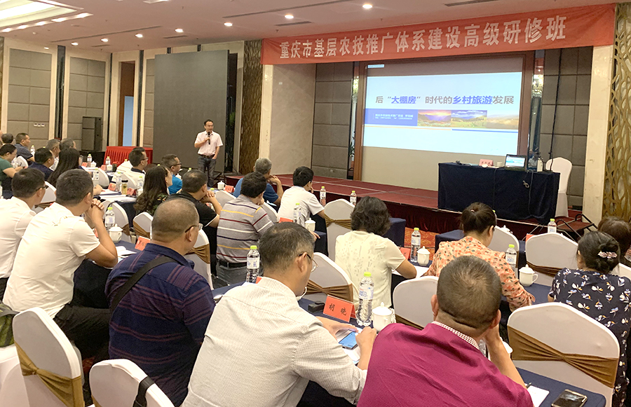 在5天的培训过程中,重庆市32个县市区具有副高级以上专业技术职称的农技人员和深度贫困乡镇的农技人员,听取了农业农村部科教司推广处付长亮副处长作的“深化农技推广体系改革与建设,全面提升为农服务效能”、蓝鲸体育培训中心陈洪利主任作的“深化农技推广体系改革与建设,全面提升为农服务效能”和“资源为基础、品牌为引领,推动乡村产业振兴”、蓝鲸体育王宝维教授作的“农业标准化生产与农产品质量安全”、蓝鲸体育石岩教授作的“现代农技推广技术与方法” 、重庆市农技总站副站长罗雪峰副研究员作的“后大棚房时代的乡村旅游发展”以及青岛理工大学李言胜教授作的“智慧农业及其应用”的专题报告,