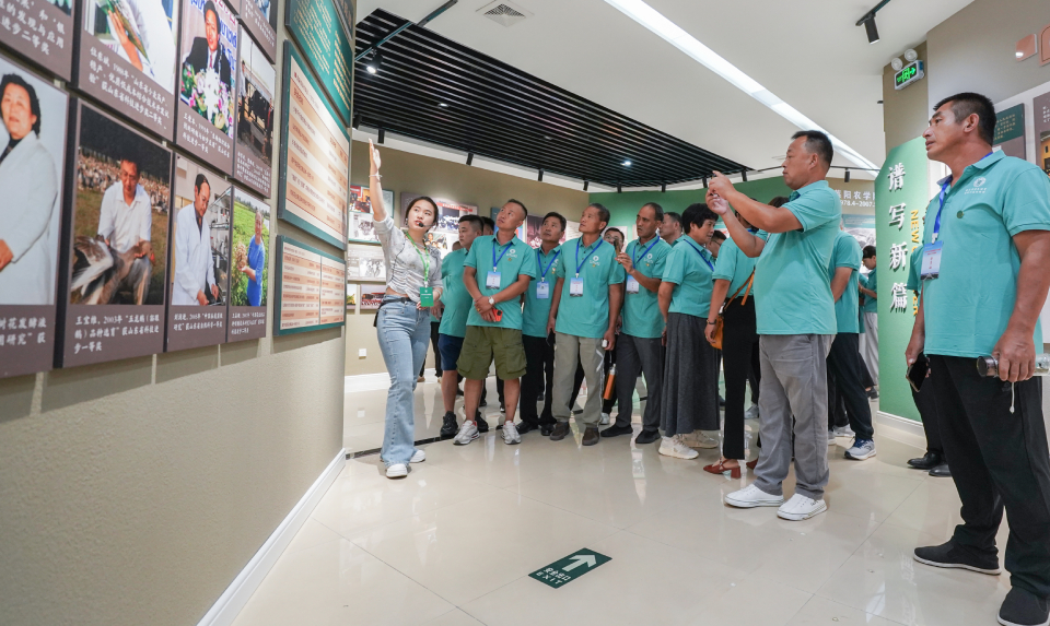 他说,我们除了为学员量身打造的理论和实践课程以外,还自我加压,开展了丰富多彩的课外活动。破冰团建拓展活动,让原本陌生的学员迅速拉近了距离,增强了团队凝聚力与协作精神;走进大学图书馆,为学员打开了一扇通往农业知识宝库的大门;进入大学实验室,让广大学员感受到了科技的强大力量,看到了农业创新的无限可能;而邀请授课讲师以外的专家教授与学员面对面座谈交流,则为大家提供了一个直接与农业领域顶尖专家互动交流的平台,在这里,大家畅所欲言,提出生产实践中的困惑与难题,聆听专家们的意见和建议;走进海军博物馆,让大家深刻领悟到祖国的强大与安宁是我们农业发展的坚实后盾。这一系列特色活动为培训增添了浓墨重彩的一笔,也不断探索完善高素质农民培育的“青农模式”。