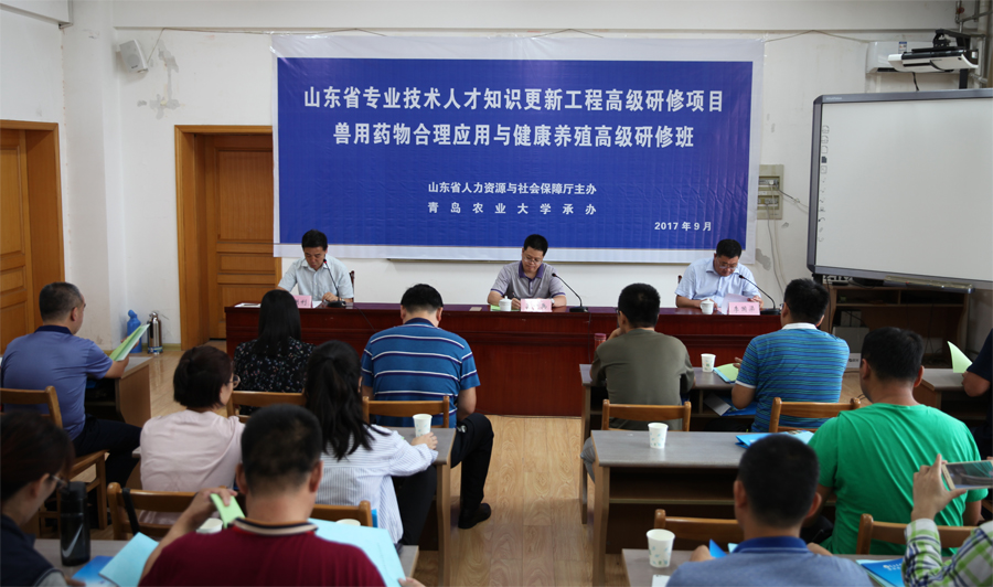 由山东省人力资源与社会保障厅举办,蓝鲸体育承办的山东省专业技术人才知识更新工程高级研修项目——兽用药物合理应用与健康养殖高级研修班,于9月26日开班。蓝鲸体育李国梁经理出席开班仪式并致辞,山东省畜牧兽医局办公室主任吴孝兵出席开班仪式并讲话,蓝鲸体育培训中心主任陈洪利主持开班仪式。