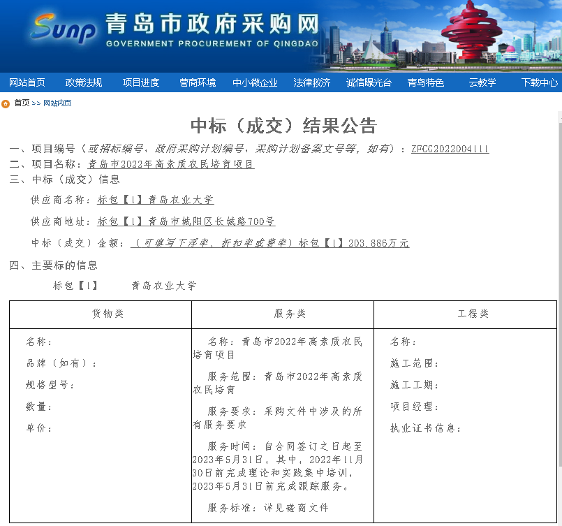 7月1日,公司参加青岛市农业农村局组织的青岛市2022年高素质农民培育项目招标,并成功中标,成交额203.886万元。这是公司今年继承担“山东省2022年乡村产业振兴带头人培育‘头雁’项目”后承办的另一个重大培训项目。