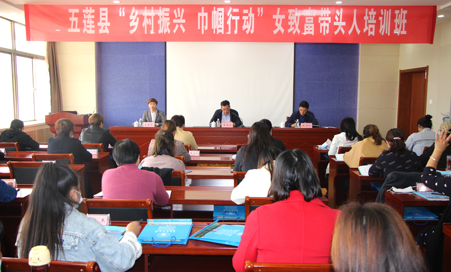 为深入学习贯彻习近平总书记在山东代表团关于实施乡村振兴战略的重要讲话精神,全面落实上级妇联关于实施乡村振兴战略的工作部署,培养一批积极建设美丽乡村、发展农业产业和乡村旅游的农村女带头人,指导基层妇联组织大力开展乡村振兴巾帼行动,引领带动妇女为实施乡村振兴战略贡献巾帼力量,10月20日下午,由五莲县妇女联合会主办,蓝鲸体育承办的五莲县“乡村振兴 巾帼行动”女致富带头人培训班,在蓝鲸体育开班。