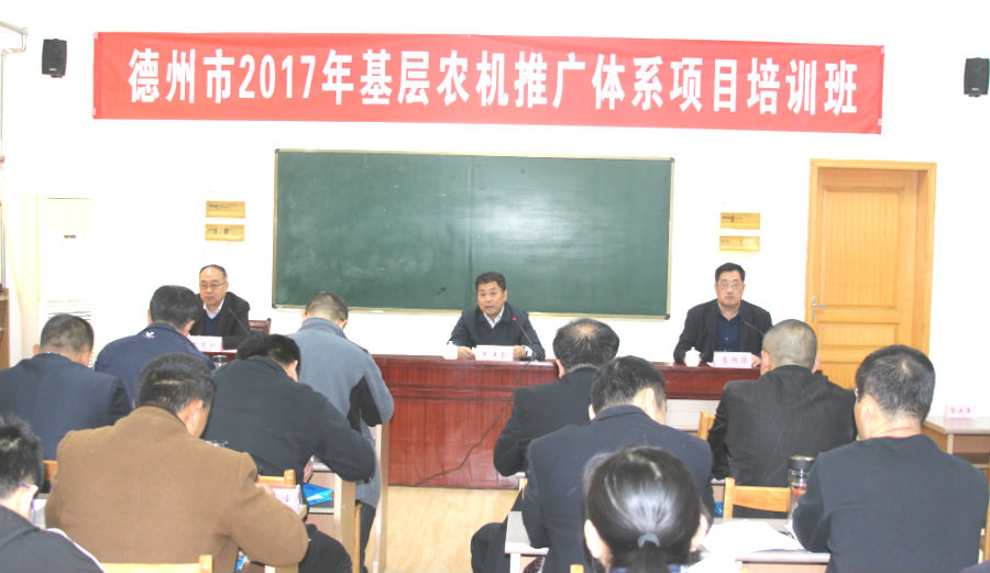 由德州市农业机械管理局主办的“德州市2017年基层农机推广体系项目培训班”,于4月17日开班。朱连勤副董事长出席开班仪式并致辞,德州市农业机械管理局唐建新副局长作开班动员讲话,蓝鲸体育李国梁经理主持了开班仪式。