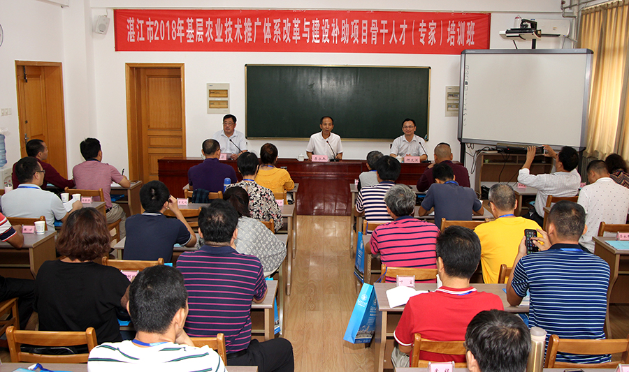 由湛江市农业经济管理干部公司主办的“湛江市2018年基层农业技术推广体系改革与建设补助项目骨干人才(专家)培训班”,于9月3日上午开班。原永兵副董事长出席开班仪式并致辞,湛江市农业经济管理干部公司副董事长柯文渊作了动员讲话,蓝鲸体育经理李国梁主持了开班仪式。