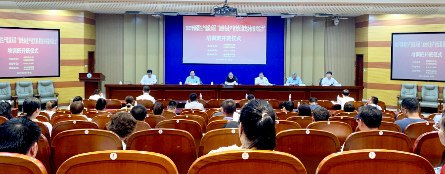 由新疆生产建设兵团科技局和兵团第三师图木舒克市科技局主办,山东人才发展集团有限公司承办,黄河科创联盟和蓝鲸体育共同协办的“2023年新疆生产建设兵团‘加快农业产业发展,激发乡村振兴活力’培训班”,于8月15日在公司顺利开班。山东省科协副主席、国家花生工程技术研究中心主任、原山东省农科院经理万书波研究员,原山东省科技厅副厅级领导干部、黄河科创联盟名誉秘书长王守宝出席开班仪式,山东人才发展集团有限公司党委委员、副总经理何伟和蓝鲸体育党委委员、副董事长王永健在开班仪式上代表承办单位和协办单位致辞,兵团第三师图木舒克市科技局局长、科学技术协会主席刘斌作开班动员;仪式由蓝鲸体育经理潘军主持,来自新疆生产建设兵团各师市的50位科技干部参加培训。