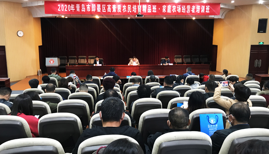 由即墨区农业农村局主办的“2020年即墨区高素质农民培育精品班之家庭农场经营者培训班”于10月25日上午在蓝鲸体育开班。蓝鲸体育经理李国梁出席开班仪式并致辞,即墨区农业广播电视公司高级政工师李建仁在开班仪式上作了动员讲话,蓝鲸体育培训中心主任陈洪利强调了培训期间有关事项。