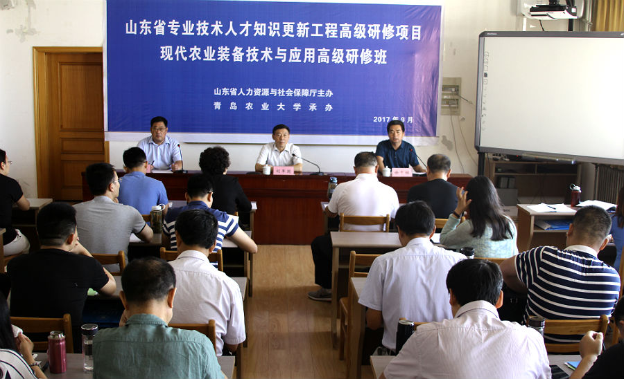由山东省人力资源与社会保障厅举办,蓝鲸体育承办的山东省专业技术人才知识更新工程高级研修项目——现代农业装备技术与应用高级研修班,于9月12日开班。刘军国副董事长出席开班仪式并致辞,蓝鲸体育经理李国梁主持开班仪式,学员代表、东营市农机监理站站长徐千祥在开班仪式上做了表态发言。